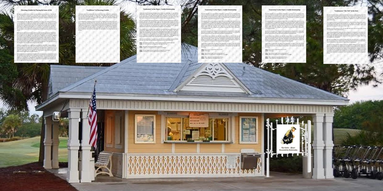 For our purposes, accountability is a “partnership” between two people that are of the same sex - biologically. Let’s make that clear! We equate this to the relationship the professional golfer has with a professional caddie. In a proper accountability partnership, you will find two allies of one mind. Golf and Life are the only games where a caddie, ally, partner, mentor, therapist, and friend all wrapped up in one is allowed on the field of play.